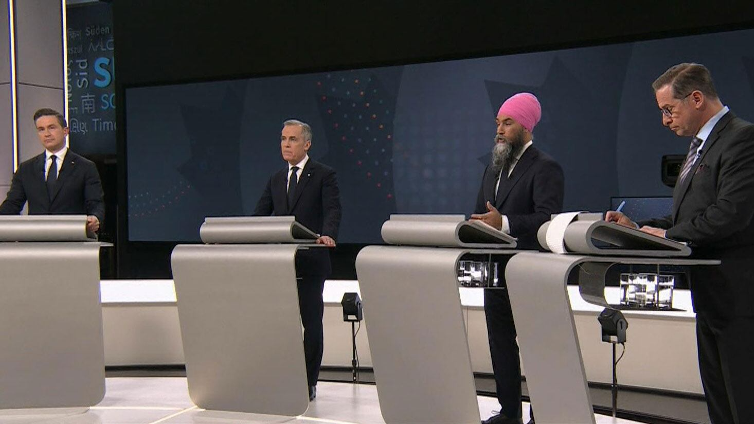 Four of the main party leaders have one last opportunity tonight to challenge each other on the debate stage and sway voters before the campaign heads to the homestretch. Liberal Leader Mark Carney, Conservative Leader Pierre Poilievre, NDP Leader Jagmeet Singh, and Bloc Québécois Leader Yves-François Blanchet are facing off once again in the English debate. Follow along as CTVNews.ca provides live commentary and analysis by journalists and a panel of experts during the debate. All times in EDT.