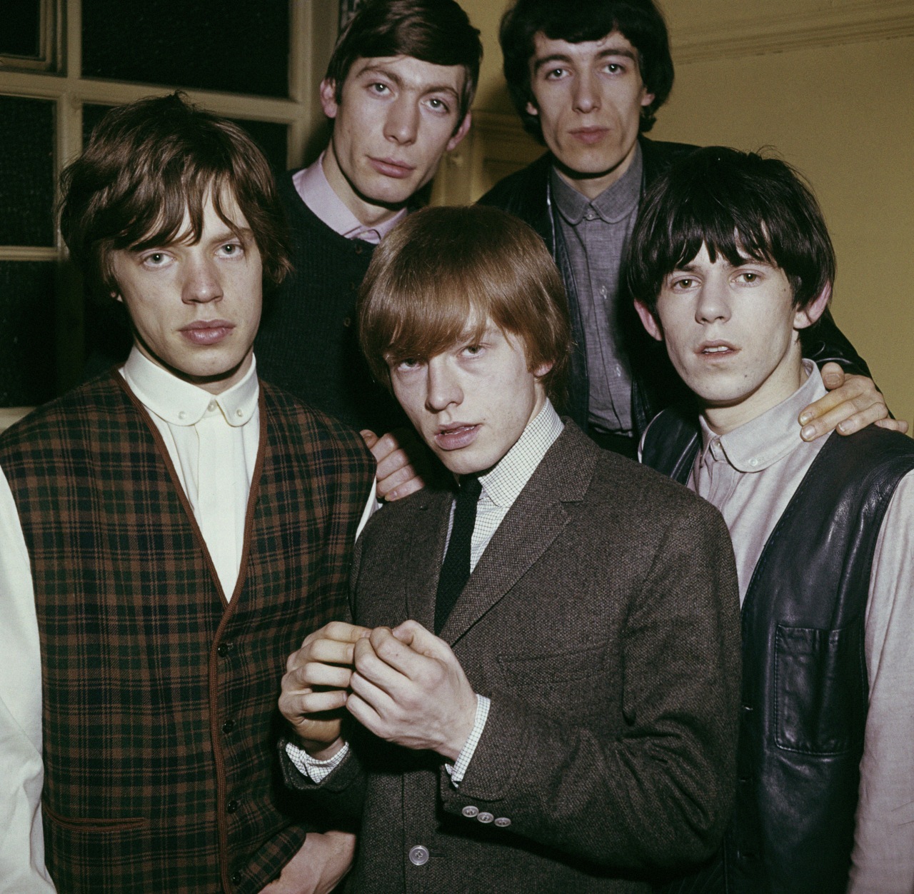 Richards, far right, is shown with The Rolling Stones in 1963. He met Mick Jagger, far left, at the train station in Dartford, the English town where they both grew up, just two years earlier.© Paul Popper/Popperfoto/Getty Images