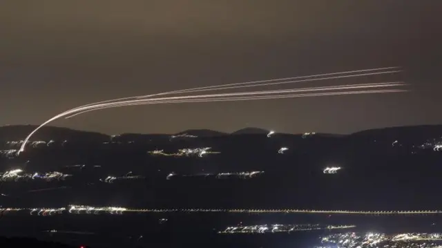 Image source,EPAImage caption, Israeli air defense systems intercepting projectiles yesterdayPublished at 23:29 15 April