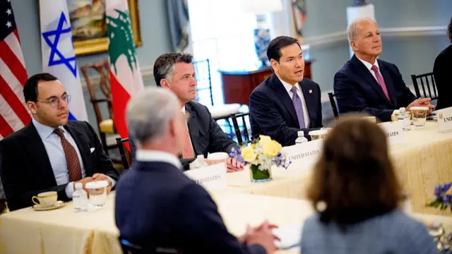 Image source,Getty ImagesUS Secretary of State Marco Rubio held talks with Lebanese Ambassador to the US Nada Hamadeh Moawad, and Israeli Ambassador to the US Yechiel Leiter, in Washington DC on Tuesday